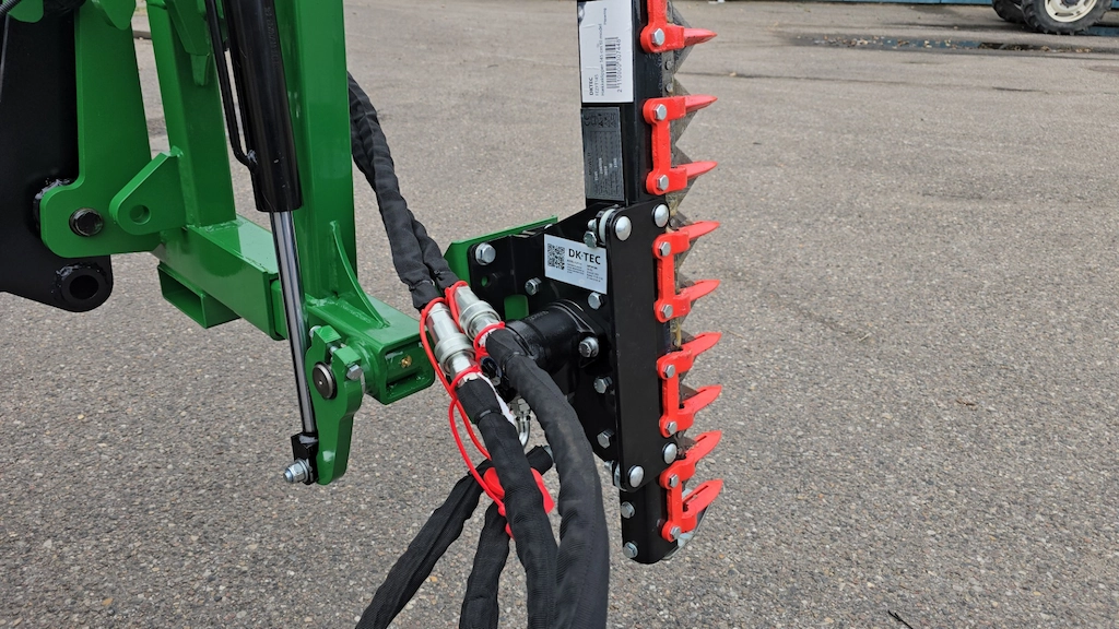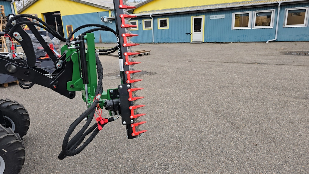 Hækkeklipper på redskabsbære til frontmontering på minilæsser eller traktor.